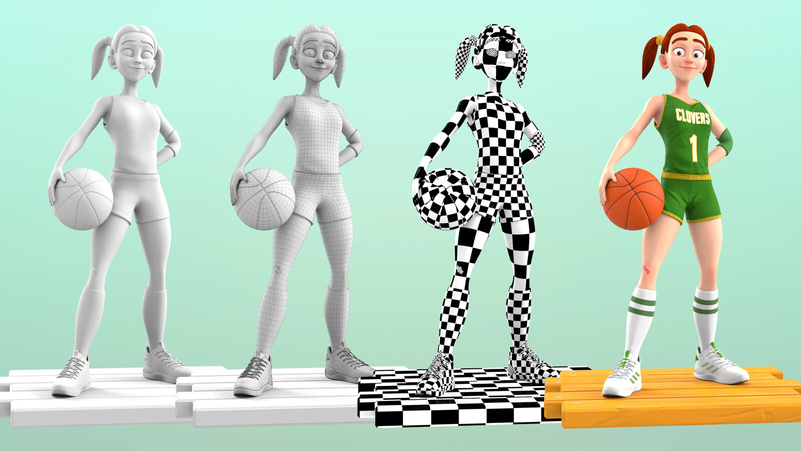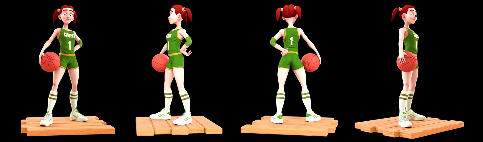 Clover Basketball girl. Modeled and Sculpted in Maya/ZBrush. Textured with Substance Painter/ZBrush. Rendered with Redshift. This project is a tribute to my favorite sports team, the Boston Celtics ☘️