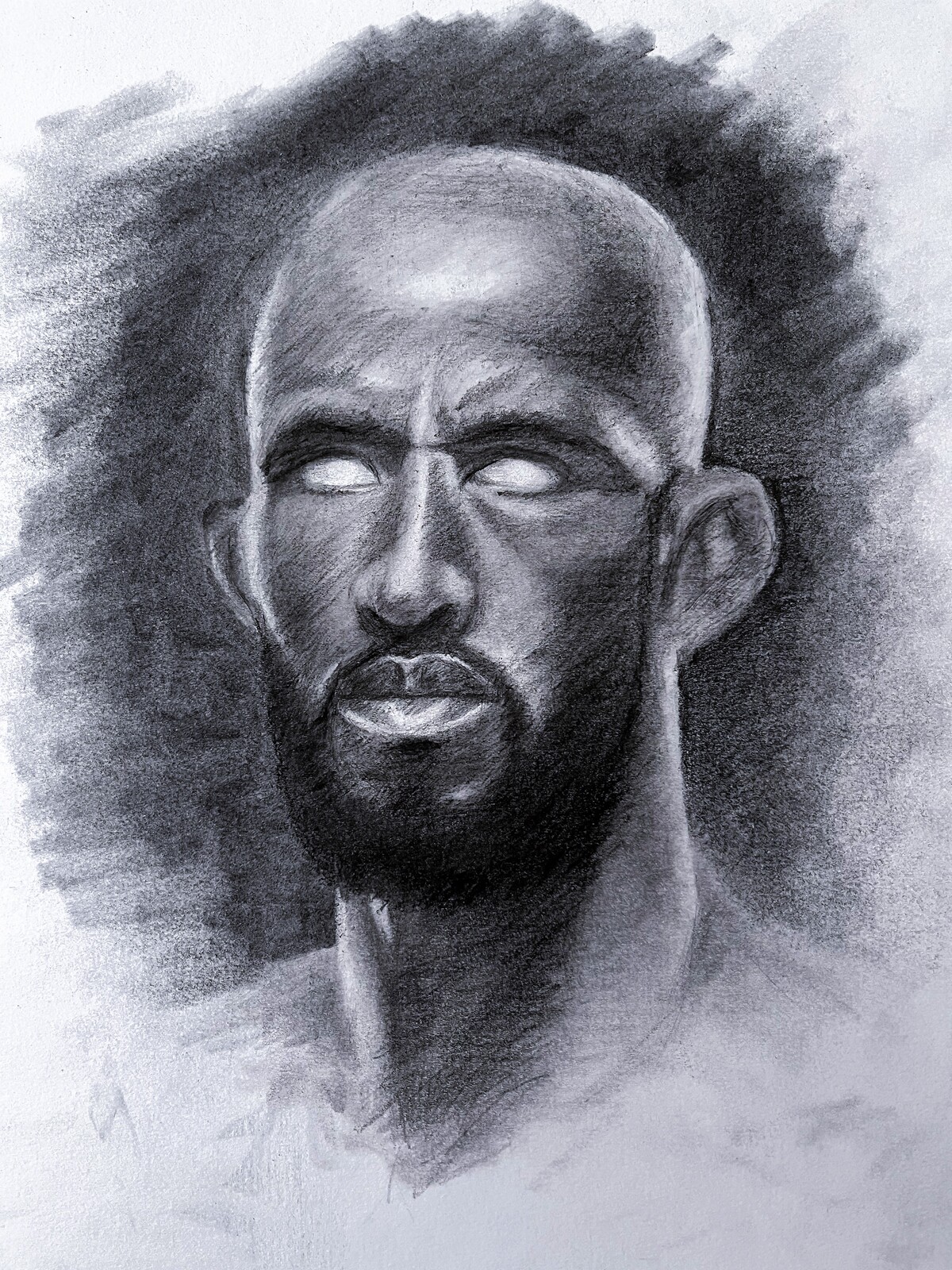 Graphite and charcoal portrait of the defending ONE Championship flyweight champion and former UFC flyweight champion Demetrious "Mighty Mouse" Johnson. Created in collaboration with ONE Championship, Amazon Prime, and NAS Academy to promote ONE Fight Night 1: Moraes vs. Johnson II on Prime Video pay-per-view fight on Amazon Prime.